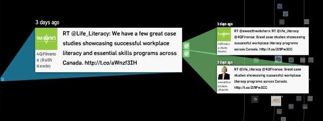 ‘Revisit’ is a real time visualisation of the latest 200 twitter messages for your search term. It is designed by Moritz Stefaner. Click on the link to follow what people around the world are tweeting about “workplace literacy”. Results are displayed as a time line and update as more peop